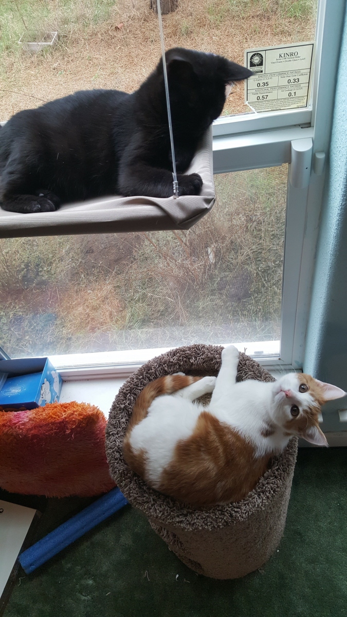 Meet Nano Cat the little “panfur”, he is a rescued indoor black cat. Nano looks just like a little panther, he has black fur, black foot pads, black whiskers, amber-colored eyes, and a couple of strands of white fur on his chest. Born around September 2016, he is smaller than the average Bombay cat, weighing about 8.4lbs. His legs and tail are medium lengths. Though small in stature, Nano is strong enough to wrestle and play equally with his bigger tabby cat brother, Buddy the Meow.